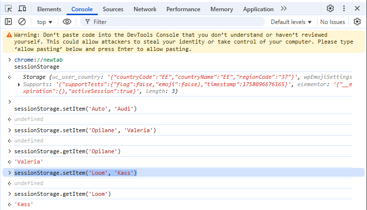 SessionStorage on veebibrauseris asuv veebimälu, mis säilitab andmeid ainult käesoleva sessiooni ajal.