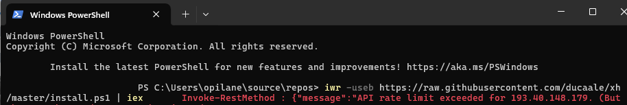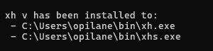 Käsk laadib alla ja käivitab skripti, et installida tööriist xh (klient HTTP-päringute jaoks).