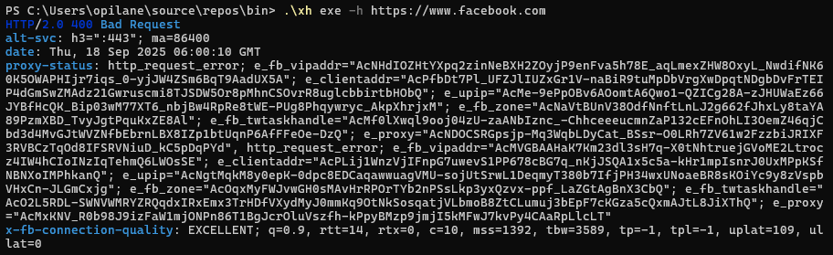 Need käsud täidavad HEAD-päringuid YouTube’i ja Facebooki serveritele, et saada ainult vastuse pealkirjad ilma lehe sisu alla laadimata.