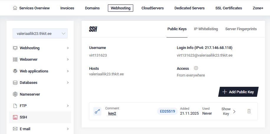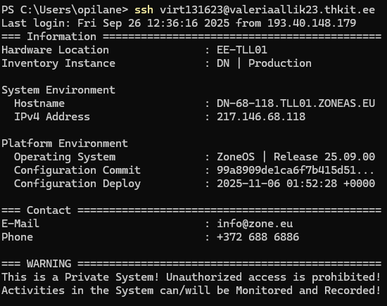 Exit ja veel kord sisse –> selleks kirjutada ssh serverinimi…virt…..