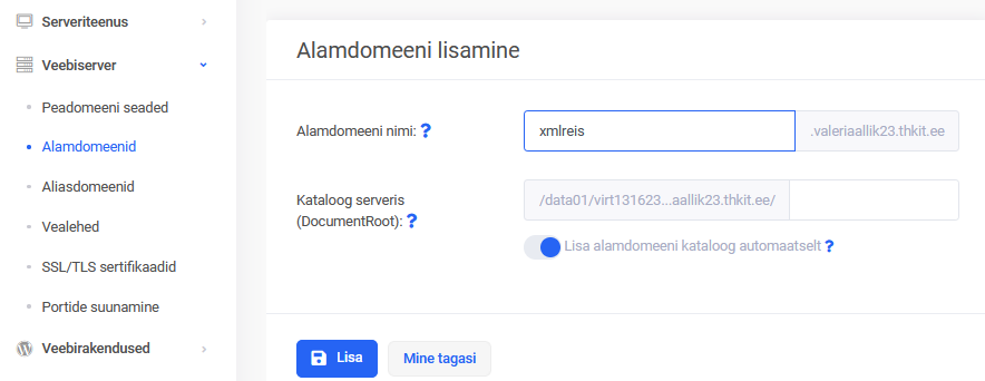 Mine Veebiserver -> Alamdomeenid ja kirjuta alamdomeeni nimi